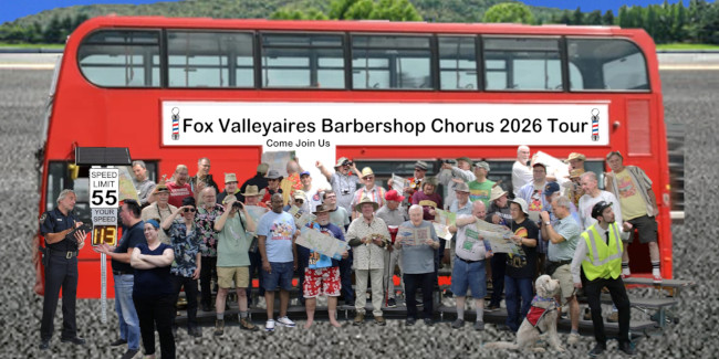 Join us as we take a virtual tour across the country in our 81st annual barbershop show: "Road Trip: Are We There Yet?" The show features songs about lots of fun places in the USA in a cappella harmony sung by the chorus and our chapter quartets, as well as the 2006 International Champion quartet Vocal Spectrum celebrating 20 years as international champions! It all happens on Saturday, April 25, 2026 at 3:00 PM at the Xavier High School Fine Arts Theater in Appleton. One show only: Don't miss the bus!